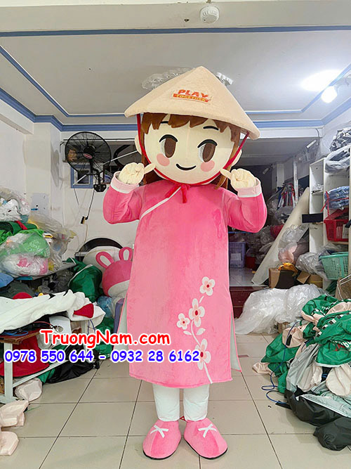 MASCOT BÉ MẶC ÁO DÀI ĐỘI NÓN LÁ SIÊU CUTE - MCN077